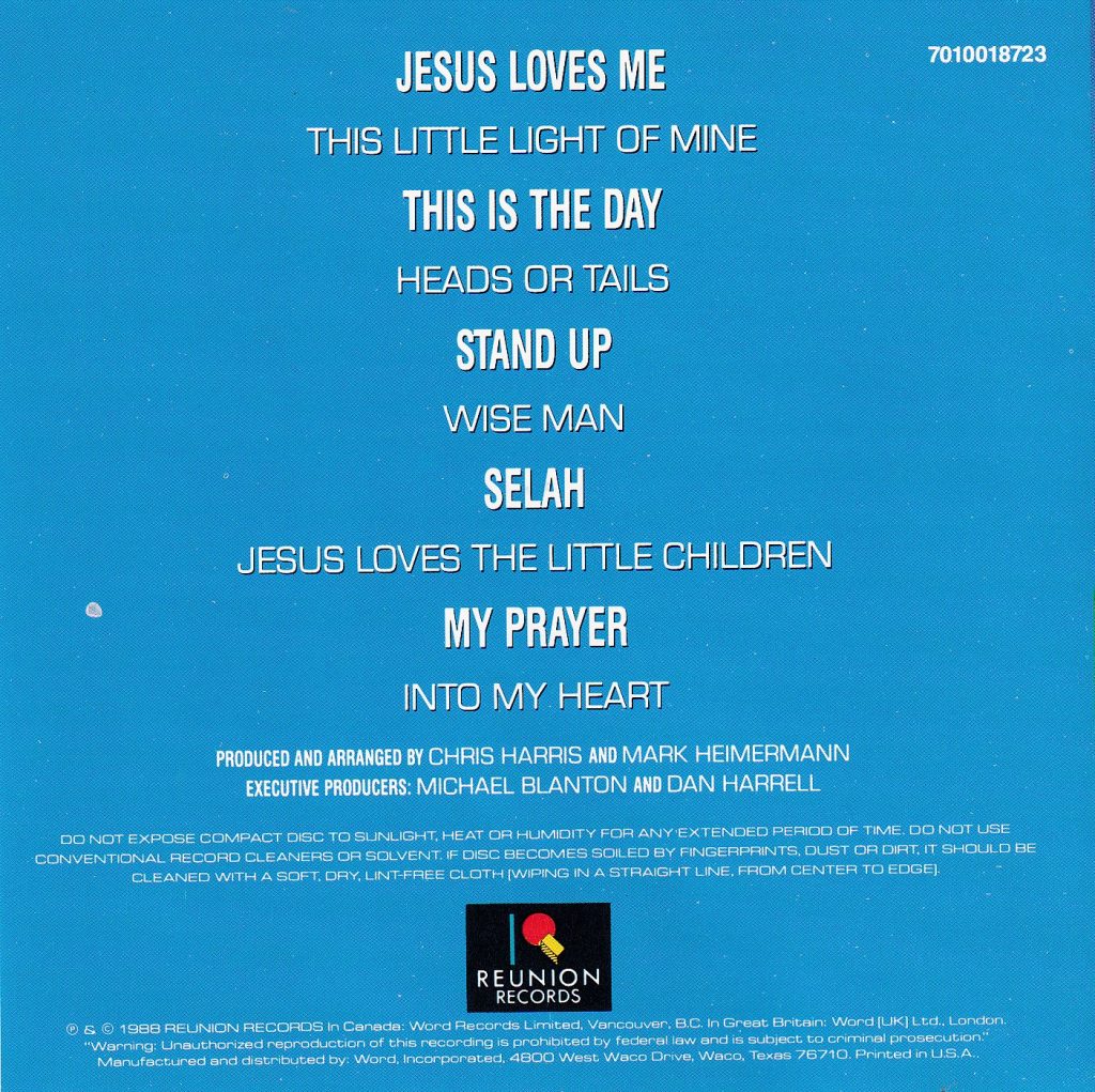 I have to admit I completely missed this one in the 80’s but I assume the cover would have made me skip right by this one. If I had to describe this one it would sort of be the Christian version of Kidz Bop but not really. The album consist mainly of cover versions of vacation bible school and campfire songs we all know though they are very popped up. This project was the brain child of Chris Harris and Mark Heimermann with some studio musicians and some kids. Strangely I can’t find any record of who the kids were. There are two original songs on the album penned by Heimermann. “Heads or Tails” and “Selah.” Both have a fun 80’s pop sound and are actually pretty good. Many of you grew up with this series of albums so we get a lot of requests for the entire series. We’re here to please so we will post them all.