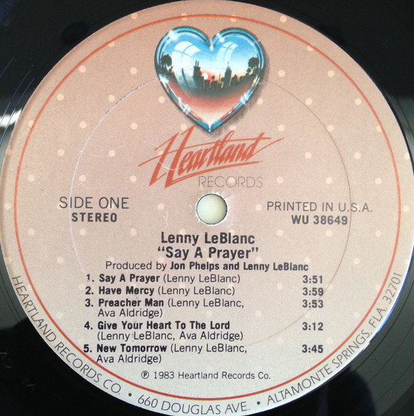 Lenny LeBlanc is a very interesting story. He was actually quite a successful secular artist in the 70’s and was under contract by Capitol Records. He had recorded and released the first of that 2 record contract in 1981. However also 1981 he became saved after having a talk with his newly saved friend who was, and I quote here “… a big-time drug smuggler”. Lenny subsequently wanted to do Christian music which Capitol Records wasn’t much interested in. They did however agree to release him from his contract of he could find someone to buy it out. The Christian music labels were certainly not interested in this so he was stuck being unable to do music and actually made a living doing stained glass which was another one of his skills. In 1983 it became obvious to Capitol that no one was going to buy out his contract so they agreed to release him. He immediately signed with Heartland Records and recorded this album. The album is a relatively easy listening 80’s pop album but there are a few pretty good upbeat tracks of which the best is probably “Give Your Heart To The Lord”. The single for the album was “Say A Prayer” which reached #9 on the CCM charts.