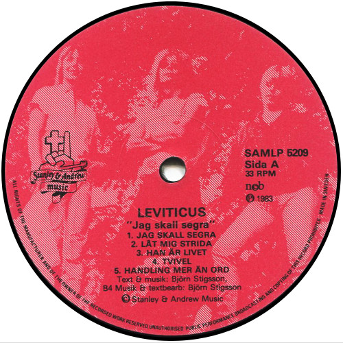 Leviticus formed in 1981 when cousins Kjell and Håkan Andersson grouped up with Bjorn Stigsson. I really can’t find much information on their early years but they ended up releasing the Swedish version of this album in 1983. The band headed back into the studio to record the English version a little later. While the Swedish version wasn’t released outside of Sweden the English version was picked up by Refuge records and released in the U.S. on their Shadow Records label. I believe the English of the version of the album used the original music tracks with just new vocals. Leviticus played the Greenbelt festival in England in 1984, and 1985 in support of this album. This album has a bit of a symphonic feel that disappeared in the bands later releases. The engineering on this album was not the best in my opinion as it appeared the producer/engineer were going for the “wall of sound” feel which never works well on a Metal album again in my opinion. At the time of this album I was a huge fan of Jerusalem so I’m thinking I would probably been a huge fan of these guys but this album was never released in Canada. Luckily however both Swedish and English versions of this album have had several re-releases over the years.