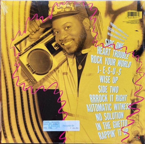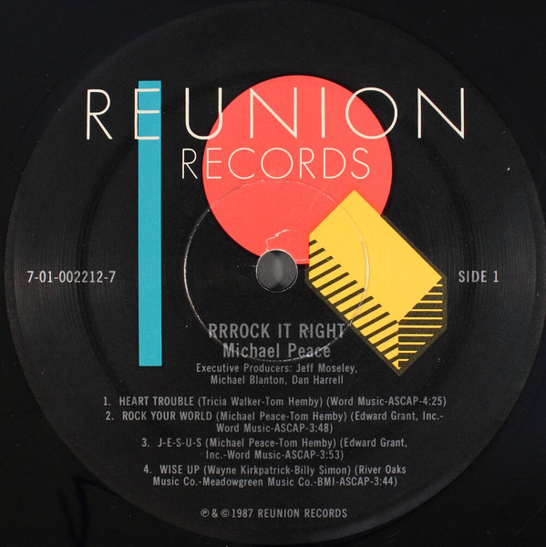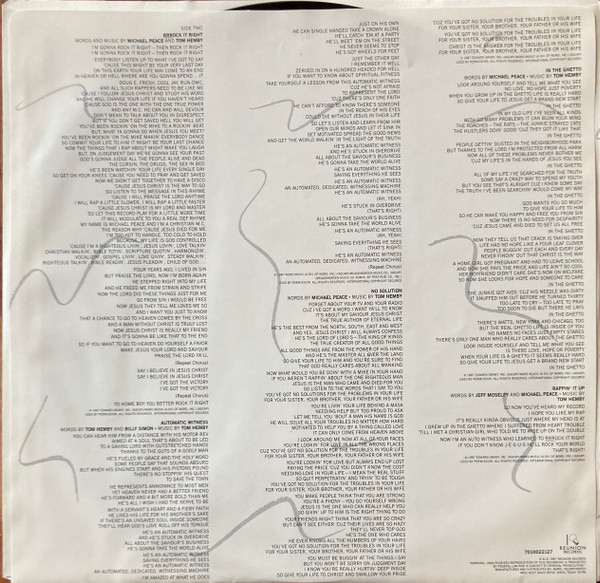 This is the first album from Rap artist Michael Peace who was one of the very early Rap artist in the Christian genre. I’m actually a little confused with this album because strangely it was produced and arranged by Michael Blanton and Dan Harrell who worked on all the Amy Grant albums of the day. Rap was an up and coming music style so I think Reunion Records wanted to get ahead of this trend. Inexplicitly they chose Michael Blanton and Dan Harrell to work on the project but neither of them had any experience with Rap or even with a black artist for that matter. As a result we have a great artist and idea for an album with horrible execution. I seriously wonder if they even listened to a Run DMC album before they worked this album. I will give them credit for one thing and that is that they had to be the enablers for Michael’s cover of “Wise Up” which is actually pretty darn good. My real problem with the album is that everything is thin. The music tracks, which I really really like, have no feel, no soul, and just feel like backing tracks. There is absolutely no effects on Michael’s voice with the exception of a bit of echo here and there. This was just the wrong team to work on this album and I know Rap isn’t only in black culture but that’s where it came from and other than Michael I don’t even see a black person involved with this album. Now that I’ve said that I do think this is a good album, there’s tons of talent here but the album just feels unfinished. I just wonder what it would have sounded like if someone like Rod Hui had a shot at the album.