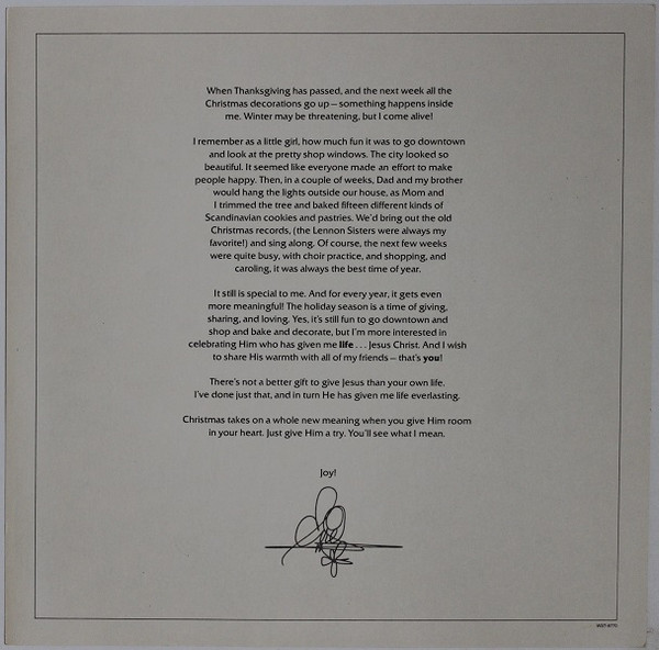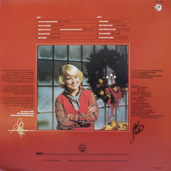 This album probably contains the biggest CCM Christmas song ever. The title track was written by Andrew Culverwell and suited Evie’s vocals perfectly. The album also received a nominated for Grammy Award for best Contemporary Gospel performance. The album is mainly traditional material but Lennart Sjöholm did many of the arrangements. The album has a country feel and is one of the most loved CCM Christmas albums still to this day.