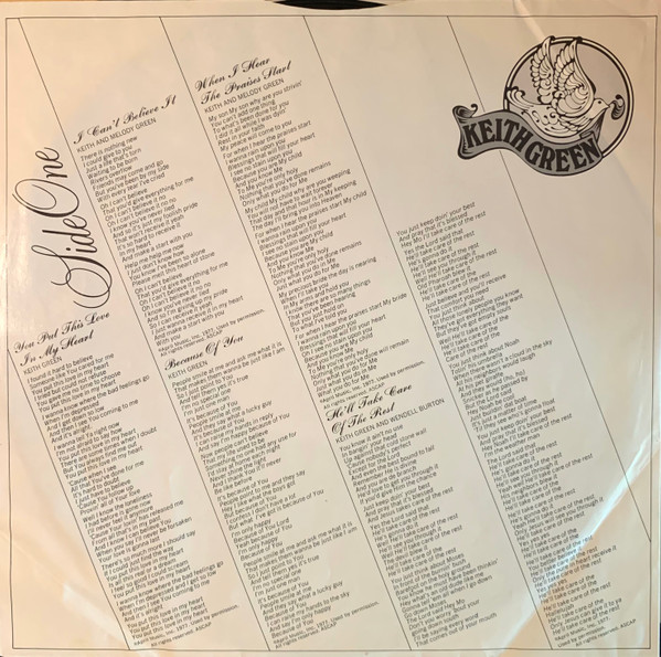 Credits Accordion – Kenny Kotwitz Arranged By [Strings] – Harlan Rogers Backing Vocals – Danniebelle Hall, James “Arky” Felix, Keith Green Bass – Todd Fishkind Concertmaster – George Poole Drums – Bill Maxwell Engineer – Al Perkins, Gordon Shryock, Larry Emerine, Wally Duguid Engineer [Mixing] – Bill Maxwell, Keith Green, Tom Trefethen Guitar – Dean Parks, Gary Denton, Mike Deasy Organ – Harlan Rogers Photography – Gary Heely Piano, Acoustic Guitar – Keith Green Producer – Bill Maxwell, Keith Green