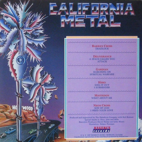 To say this is a legendary sampler is an understatement. It was 1987 and metal was really catching so Regency put this sampler out. They lured you in with Barren Cross and then fed you some of California’s best Metal bands. Many of these tracks weren’t even released elsewhere for 20 more years. Also included on the album was the unreleased band Hero that people loved. I have detailed below where you can find these songs outside of this sampler. If you had this one in 80’s you know how special it was.