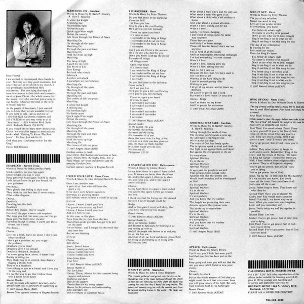 Tracklist 1 – Barren Cross – Deadlock – 4:33 2 – Guardian – Marching On – 3:38 3 – Neon Cross – I Need Your Love – 3:08 4 – Hero – I Surrender – 3:47 5 – Deliverance – A Space Called You – 3:51 6 – Mastedon – Wasn’t It Love – 4:42 7 – Guardian – Spiritual Warfare – 4:13 8 – Deliverance – Attack – 3:44 9 – Hero – Sing It Out – 3:02 10 – Neon Cross – Son Of God – 4:15