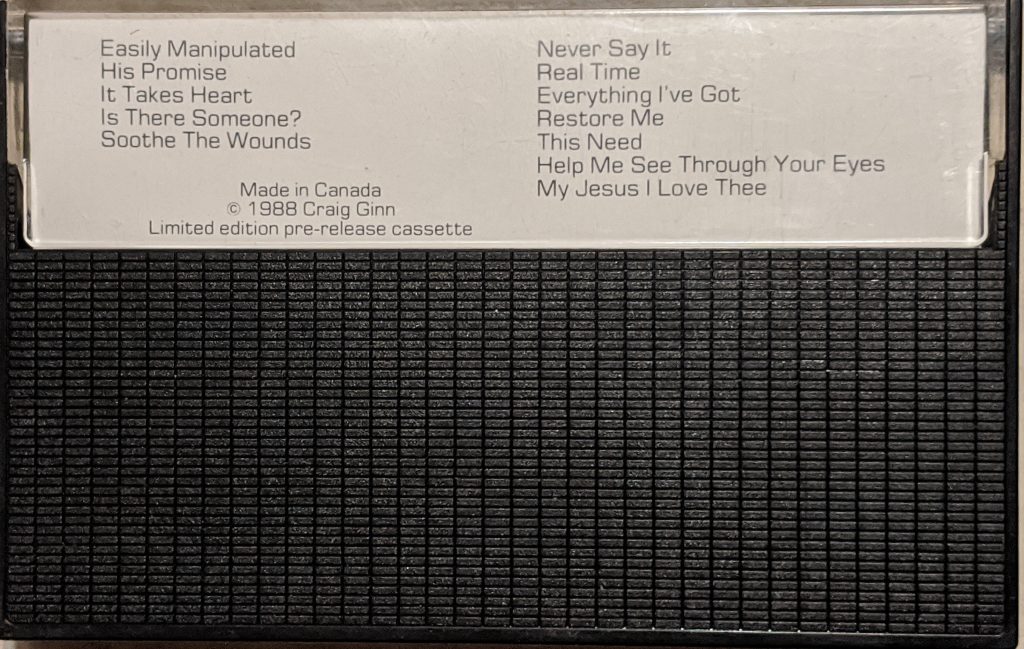 This is one of the best CCM pop albums I’ve ever heard but I can almost guarantee you’ve never heard it. Let’s start out with a bit of background. Craig Ginn was born in Churchill MB but his music career started in Winnipeg MB. The original Craig Ginn Band started in the mid 80’s with Craig’s wife, Carla, Paul Kutcher, and Sam Kennedy. They were well known in the Winnipeg Christian scene playing coffee houses, youth conventions, and church events. People from Winnipeg will probably remember them appearing frequently at The Heartline Cafe, a coffee house in the basement at Fort Garry MB church.