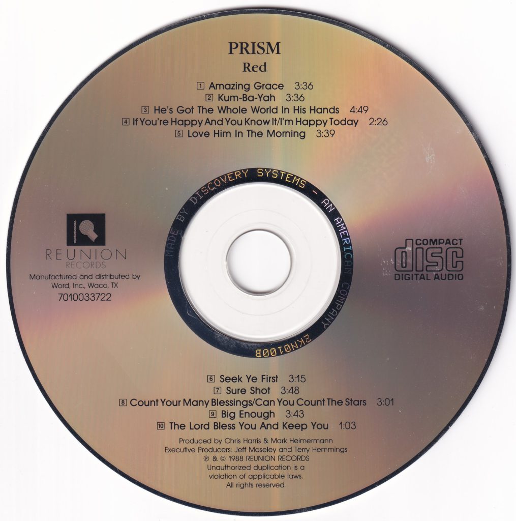 The album itself along with Prism-Blue, Prism-Red, Prism-Yellow and Prism-The Hits were originally songs that we had sung in Sunday School. Hence, the children on the cover of the albums. Back in the 1980s, I was going to Calvary Chapel Costa Mesa with some friends and remember singing these exact songs. Of course we were singing them before they became contemporary christian hits. It’s too bad they didn’t continue with the series. I would have bought them and continue diving on the internet for more of their albums. Definitely in my opinion some of the best music that I’ve heard and definitely remanence about.