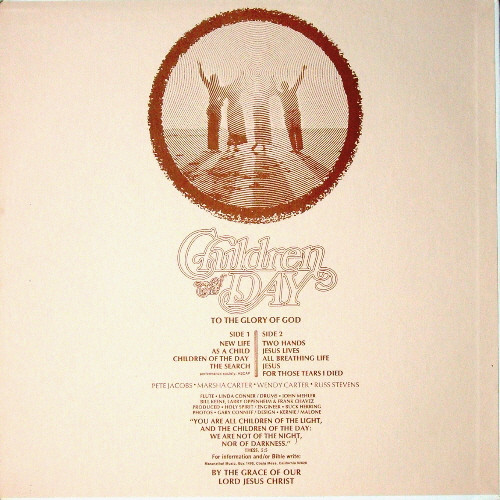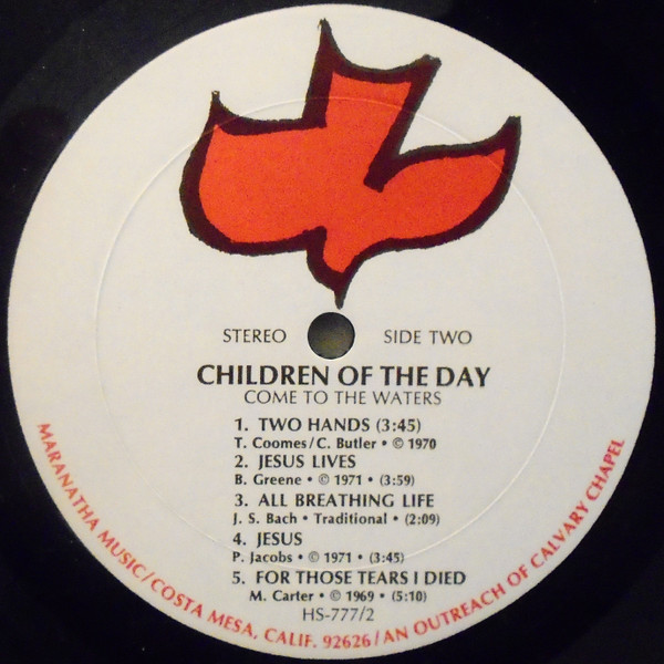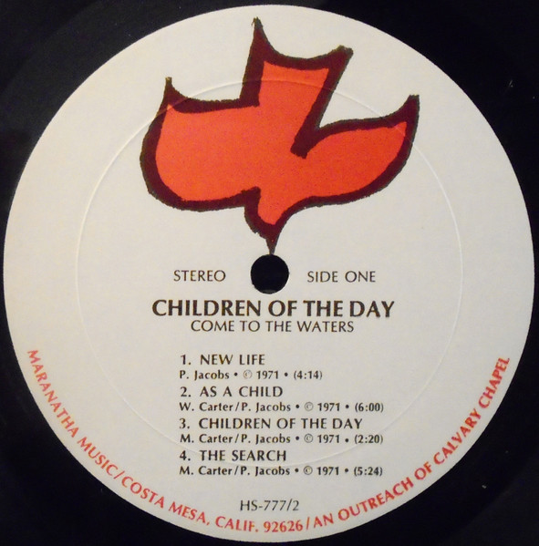 With a gift of $900 four young “hippy” converts went into a studio with friend Buck Herring and recorded what many claim is the first “group” album in CCM history and the Jesus Movement and Music in Southern California was born. Predating Love Song’s classic debut by nearly a year, Come to the Waters by Children of the Day birthed a genre and a “scene” in Southern California that would not be duplicated. And before the band finished their decade long career, they would also be a part of CCM’s first great scandal. Four friends from Calvary Chapel, Costa Mesa joined forces to create a tight harmony driven folk quartet and called themselves, Children of the day. The name of the band also comes from a line in one of the songs on the debut album. The album would also contain one of the true classic anthems of the generation and possibly the most popular worship song of the Jesus Music era. Leader and songwriter Marsha Carter and sister Wendy along with friends Peter Jacobs and Russ Stevens joined forces to create an American folk band that was even recognized and received critical acclaim from those outside the tine Jesus Music movement. Carter and Steven would marry soon after the albums release. They began performing regularly at coffee shops, Calvary Chapel Churches and elsewhere throughout the southern California region. Immediately requests for their music poured in and the quartet approached Pastor Chuck Smith about borrowing some money to record their debut album. That album would be the first on Maranatha Music, though its catalog number would be 777. The Everlasting Living Jesus Music Concert would actually be released first as this album was held up until the compilation album was released, though the finishing of the album was several months before the compilation. Come to the Waters starts with a beautiful acoustic mid-tempo ballad called “New Life” and would serve as the definitive sound for the project and the group. Acoustic piano and limited electric instruments support brilliantly tight harmonies with all four members sharing lead vocals throughout. Buck Herring would recreate a similar sound with 2nd Chapter of Acts. The acoustic piano solo is wonderful when one considers the limited budget and the fact that their use of the piano was limited by Larry Norman breaking the same piano during his recording session at the same studio.