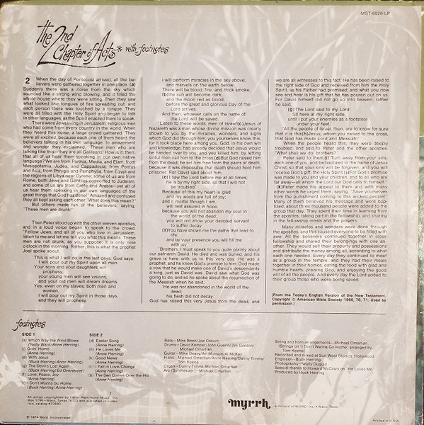 Hands down one of the most “important” releases in the history of CCM and one of the best Jesus Music albums ever recorded. Jesus Music grew up in a big with this release and forced the rest of the musicians within the genre to step up with quality songs, productions and performances. It also contains one of the greatest CCM songs ever recorded, and possibly the very best! After touring and performing with some of the best artists in the early Jesus Music scene like Barry McGuire, the three siblings were offered on recording contract of their own on Word’s rock label, Myrrh. Myrhh provided a decent enough budget to enlist the likes of Michael Omartian, David Kemper and a young Michael Been (The Call). Manyof the musicians would also become part of the ground tour band known as “a band called DAVID.” The album starts with what would later become a 2nd Chapter classic, Which Way the Wind Blows. Older sibling Annie Herring wrote much the groups music along with husband Buck, while the vocal duties were shared amongst the three. But for many it would be the lone boy, Matthew Ward, who would amaze the listeners with his unbelievable range. The Devil Lost Again features Matthew and would hint at what would come later for him as a solo artists. The more “rocking” of the three siblings, this song would have fit nicely on a Michael Omartian project and features some guitar work that pushed the envelope for the time. “Love, Peace, Joy” features the trademark tight harmonies that would earn the group their international recognition and would also later draw comparisons to ABBA, and eventually be ripped off by Silverwind. Nothing sounds quite as beautiful as siblings harmonizing and this rings true throughout the project. But the finest two and half minutes in Jesus Music history comes courtesy of the classic “Easter Song.” If ever a song deserved the recognition of the “classic” designation, it is this song. I can’t even imagine just how many times this song has been covered, sampled, sung, recorded or performed in its nearly 40 years of existence. I would venture to guess that only the Hallelujah Chorus has been sung at more Easter services. And it is also a wonderful song. Beautiful, inspirational and dynamic. This album was a game changer and a lasting testament to the legacy of one of the most important groups in CCM history.