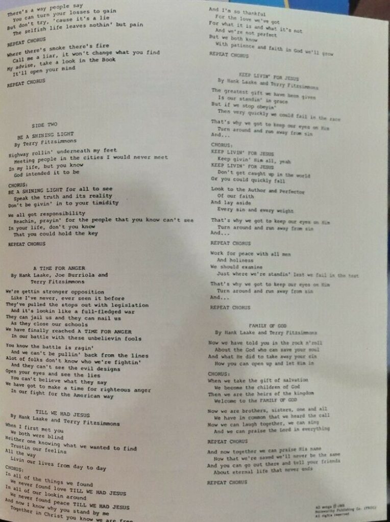 Some of the old gang from Solid Rock got together for this one minus Larry of course. Bill Batstone had helped out as a studio musician on several early Solid Rock projects and someone had the vision of him and Tom Howard doing an album. Excellent vision. This album works just perfect. Tom and Bill take turns on lead vocals and it works. The album has an excellent flow and their vocals compliment each other. The album was mixed by Mark Heard at his studio and the mix is perfect, but we came to expect that of Mark. The album is a mix of easy listening and light rock but their is something here for everyone. It’s a great rounded album and it definitely deserves a listen.