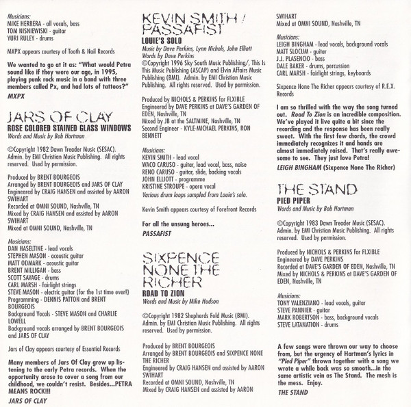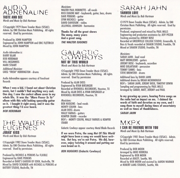 I had no idea this one existed until I stumble on it a week ago. It’s a Petra tribute album released in 1996 by Star Song with some of biggest artists of the mid 90’s. I am just guessing here but I think the producers asked the artists to “really make your cover your own.” The result? Some of these songs aren’t even recognizable. I don’t know if it’s just me but I find most of these covers to be horrible. I did like the Audio Adrenaline and Caprill And My Sister’s Garden tracks but I really struggled with the rest. But hey I’m just a critic that doesn’t always “get it.” How about you, what do you think of this project?