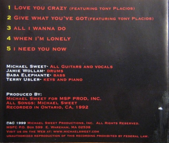 Credits Bass – Baba Elephante Drums – Jamie Wollam Guitar – Tony Palacios (tracks: 1,2) Keyboards – Terry Usler Lead Guitar – Michael Sweet Lead Vocals – Michael Sweet Piano – Terry Usler Producer – Michael Sweet Rhythm Guitar – Michael Sweet