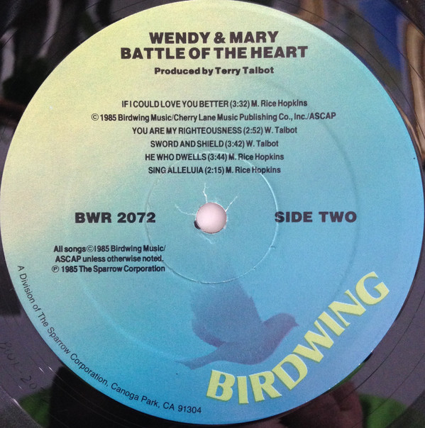 This was the fourth and final album from Wendy and Mary who were Mary Rice Hopkins and Wendy Hofheimer. Well actually at the time of this album Wendy was going by Wendy Talbot as she was married to their producer and well known CCM artist Terry Talbot. That said sometime in 1985 Wendy divorced Terry and actually married Don Francisco. You just know there’s a great gossip story there. Anyway I’m just speculating but as they broke up as a duo right around this time I can’t help but to think it was a factor. That said they did get back together in 1995 to record together again. As for Mary she went on to write several children’s songs and books. Both apparently attempted solo careers but neither were very successful with the only album produced by Wendy in 2001. I will admit I had never heard of these ladies in the 80’s but I am now fascinated by the whole drama of their undoing. I bet it’s a great story.